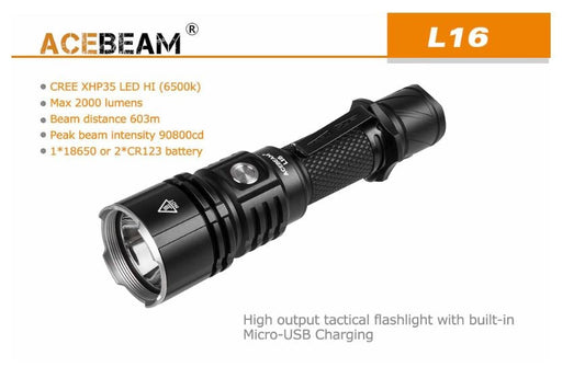 Acebeam L16 2000 Lumen XHP 35 HI LED - Over 1,978 Feet of throw