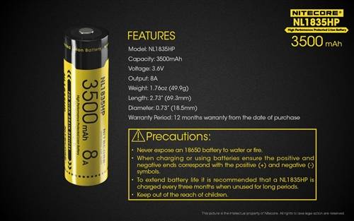 Nitecore 1835HP 3500MAH High Performance Li-Ion 18650 Battery