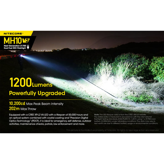 NITECORE MH10 v2 1200 Lumen USB-C Rechargeable Flashlight