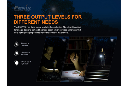 Fenix E01 V2 100 Lumen AAA Twist EDC Flashlight - Black