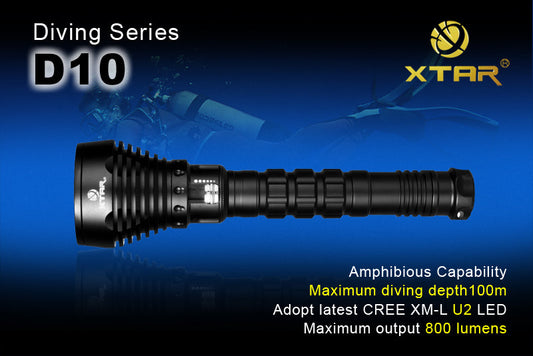 XTAR Diving Series D10 CREE XM-L U2 LED 800 Lumen 100m Dive Flashlight