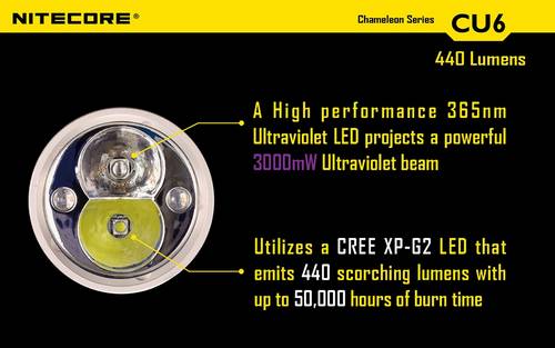 Nitecore Chameleon Series CU6 (Ultra Violet) 440 Lumen 1 x 18650 / 2 x CR123A CREE XP-G2 Dual Color LED Flashlight