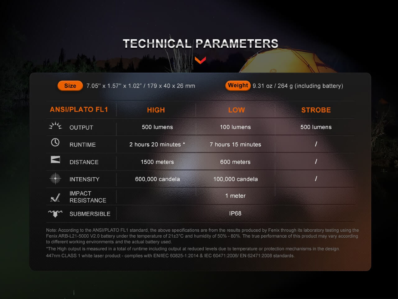 - Strobe: 500 Lumens
